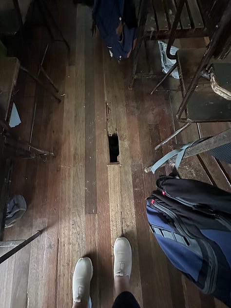(L-R: 1) At a DepEd school in Sirao with my relatives doing legacy work; 2) A common site to see in public schools; 3) Taking a snap with one of the university’s oldest employees Basilio and someone whose work in Social Work I admire , Ms. Rose Sequitin)
